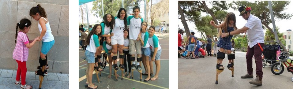 סדנת הליכה על קביים – בואו נעלה לגובה ליום אחד, ונתנסה באומנות קרקס המפתחת שיווי משקל, יציבה, ואיזון. והמון הנאה.(30, 40 ס"מ גובה). אנו מביאים כ 15 זוגות מעץ, המתאימים ל עד 30 משתתפים בו זמנית (אחד מתנסה ואחד חונך בטיחות).שני מפעילים. הסדנא לילדים מגיל 6 ומעלה בלבד.