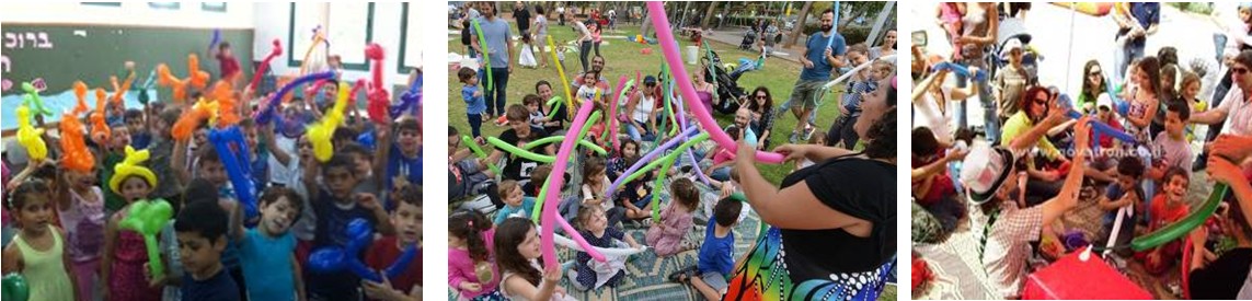 סדנת קיפול בלונים– כולם מוזמנים ללמוד איך מקפלים בלוני צורות (בלונים ארוכים). המשתתפים ילמדו לקפל בעצמם כלבים, פרחים, כתרים ושאר צורות ומשחקי בלונים. כמות הבלונים יוצרת סדנא צבעונית, מהנה, ומאתגרת, המפתחת יכולת מוטורית עדינה ותפיסת מרחב.